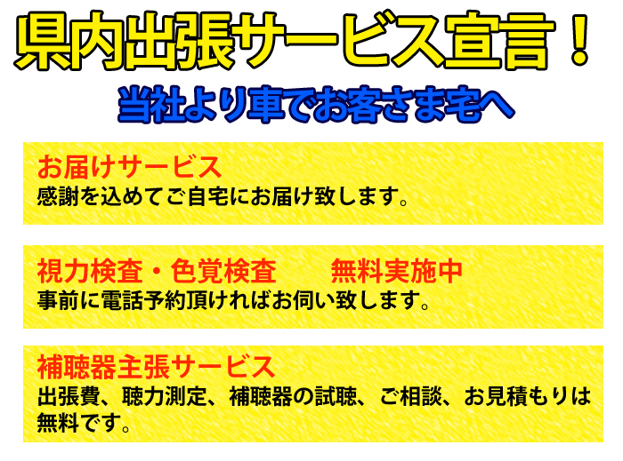 お仕事でお忙しい方、外出できない方、入院されている方などの為に、 私たちタタラメガネはご指定の場所へ出張サービスを致します。