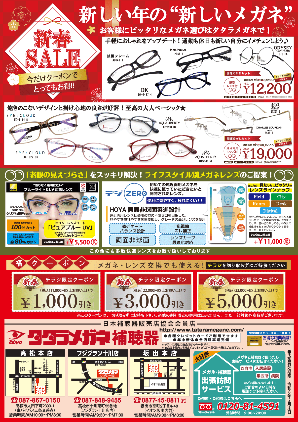 メガネのことならタタラメガネ(香川県 高松市、坂出市、丸亀市、善通寺市)