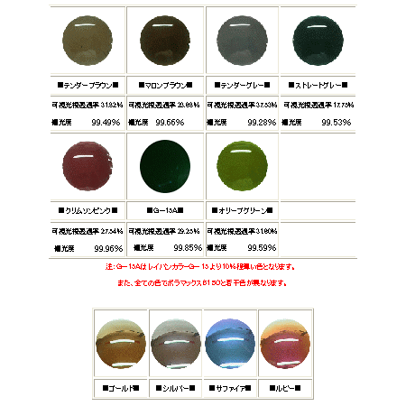 コダック偏光レンズPolarMax6160カラーバリエーション