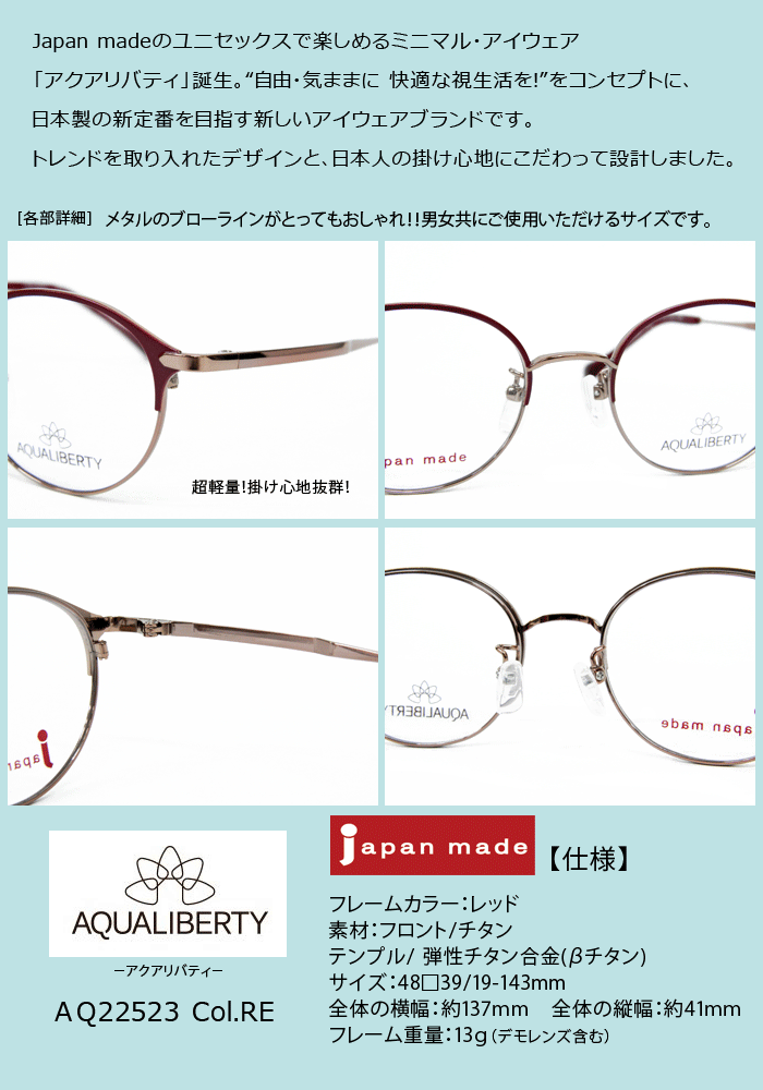 【AQUALIBERTY(アクアリバティ)AQ22523 Col.RE(レッド)48サイズ】ブロータイプ