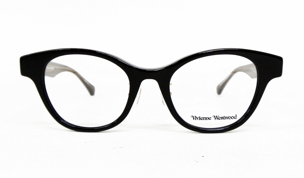 フォックス(キャットアイ)テイストの独特なデザインのオシャレなシェイプ。ライトゴールドのオーヴモチーフがアクセント。テンプルのグリッターが上品さをプラスしています。